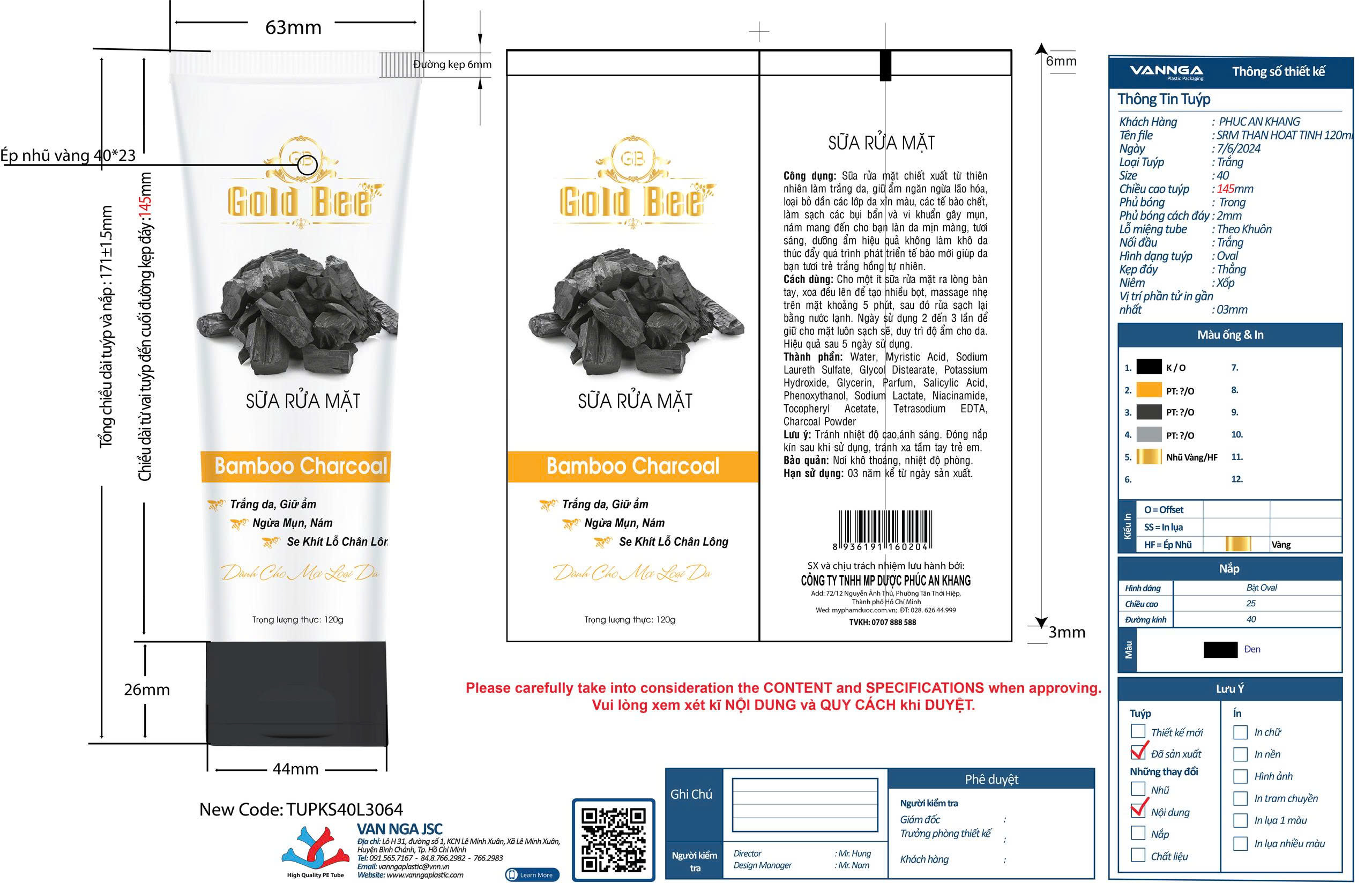 SỮA RỬA MẶT GOLD BEE THAN HOẠT TÍNH